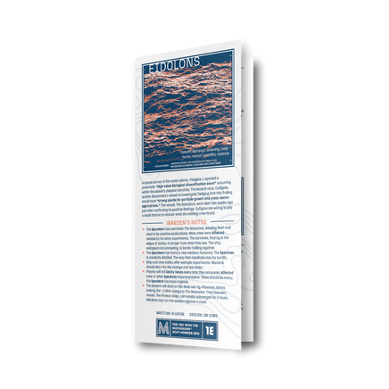 E I D O L O N S is a one-shot created for Mothership RPG 1E, dropping players into a well paying contract from CySigma, a bio-tech mega corp, to retrieve a specimen from their silent research vessel, The Nascence. Once docked, they will see that the world inside the ship is more than what they were led to believe.